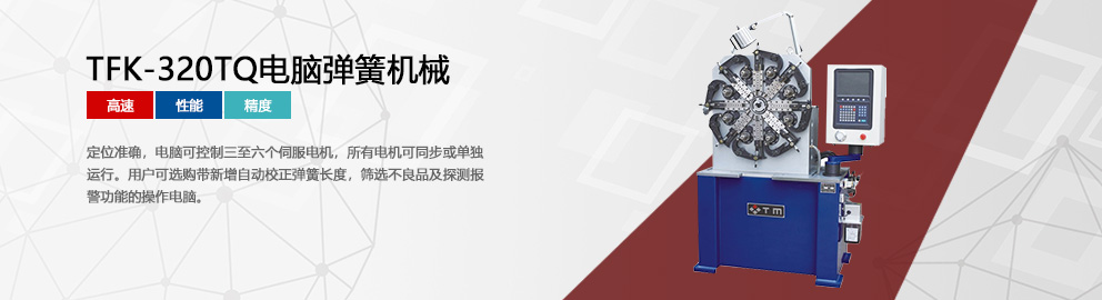 東莞市西田彈簧機械有限公司,位于美麗的珠江畔,中國最具魅力城市——東莞市,地理位置優(yōu)越,交通方便。 東莞市西田彈簧機械有限公司是集彈簧設備研發(fā)、測試、制造、銷售于一體的民營科技企業(yè),生產的電腦彈簧機型號有:TCK-208N/Y壓簧機、TCK-208B壓簧機、TCK-220A/226A壓簧機、TCK-235A/335A壓簧機、TCK-350A/550A壓簧機、TCK-580A壓簧機、TFK-320TQ/620TQ數控彈簧機、TFK-330/335TQ數控彈簧機、TFK-340/350TQ數控彈簧機等系列,彈簧機繞制的鋼線直徑為0.15-8.0毫米,可繞制拉簧、扭簧、壓簧、異形簧等各式彈簧......